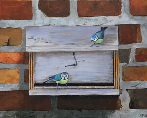voederbak met pimpelmees